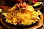 Grandiosa montanha de NACHOS crocantes, muito guacamole, chilli com carne, pico de galo, e muito molho de cheddar.