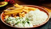 Contra file Acebolado, arro, feijão carioca, batata palito e aiolli