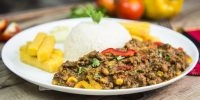 Chilli com carne, arroz, Aiolli e polenta